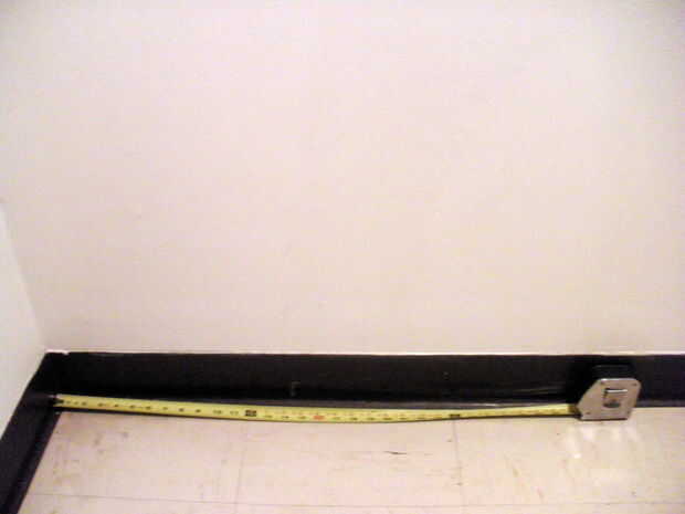 1. escoger un lado, cualquier lado. Esperemos que su habitación tiene cuatro lados. Elige uno y utiliza la cinta métrica, para medir la longitud de la pared con la mayor precisión posible. (Si su cinta métrica tiene la capacidad, te sugiero medir en pulgadas, en lugar de pies y pulgadas. Por ejemplo, "98 pulgadas" va a ser una figura más fácil trabajar con más adelante que "8 pies 2 pulgadas." Digo '.) :-) Si la pared tiene puertas o aberturas, no te preocupes de esto todavía - regresaremos a él. Simplemente Mida la distancia de la pared de extremo a extremo un punto.