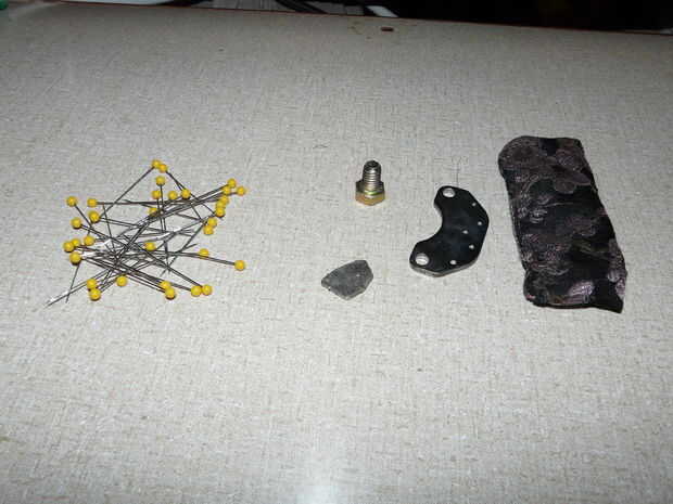 Elija un tornillo que tiene una tapa plana en vez de uno redondo. Debe ser aproximadamente 3/4 pulgada (19 mm) de largo, y por supuesto debe ser atraído por un imán. Usted también tendrá un pequeño retal de tela, un pedazo plano de metal que es atraído por un imán y un imán de neodimio plana. Imanes de neodimio son llamados también imanes de tierra rara, y tienen un montón de fuerza y poder para su tamaño. Un imán de refrigerador regular sería demasiado débil para trabajar aquí. El imán y pieza de metal que estoy usando salieron un disco duro de computadora desechados.