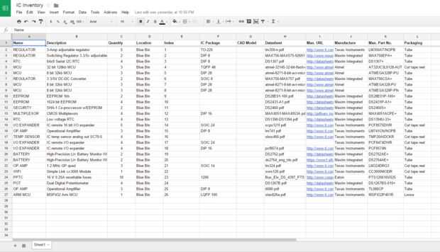 Paquete de IC - este es el tipo de paquete del IC seguida por el número de pines. Por ejemplo, un ATMega328 es un paquete DIP 28. Otros paquetes comunes incluyen TQFP, SOIC y TO-220. Esta columna es muy útil si tienes varios paquetes de la misma pieza. Cada paquete diferentes tiene una fila diferente en la hoja. Por ejemplo: un ATMega328 28 DIP y SOIC tendría dos líneas diferentes, por lo que yo puedo un seguimiento preciso de cada uno.
