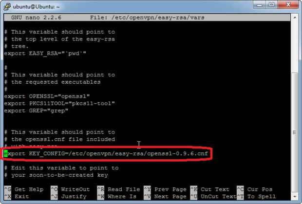 exportación KEY_CONFIG=/etc/openvpn/easy-rsa/openssl-0.9.6.cnf