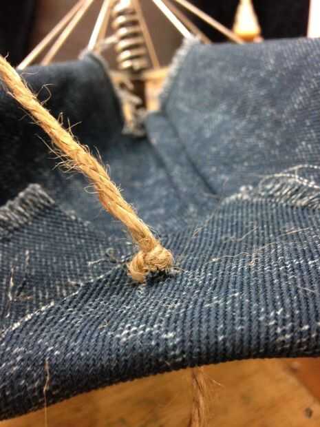 Preparar un trozo de tela que tiene longitud de moe que 3 costillas adyacentes y cubre alrededor de 2 costillas adyacentes. Para sostener la tela juntos, hacer un agujero donde se encuentran las 2 formas triangulares, que no están cubiertas por la capa superior de la tela. También, asegurar el paño atando cuerdas a través de él. Hacer nudos grandes para mantener en su lugar.