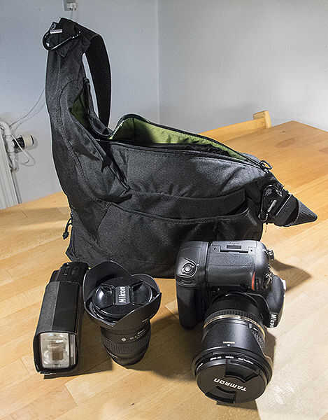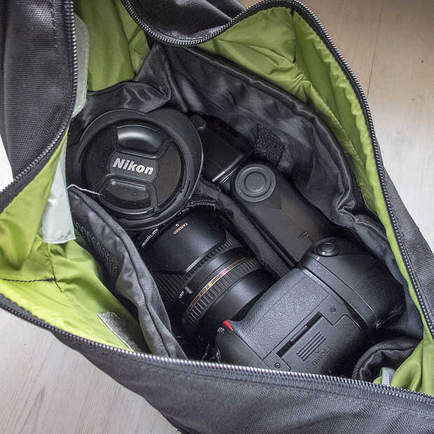 Tomemos por ejemplo mi último bolso favorito: una Lowepro Passport Sling – urbano, discreta, elegante y silencioso, pero que de entrada poco verde es demasiado pequeño para contener mi nuevo 24-70 mm 2.8. La bolsa sería bastante grande sólo si la entrada sería acomodar la lente. Línea de fondo, en vez de comprar otro bolso, me enteré de cómo adaptar hacen a la entrada de la derecha!
