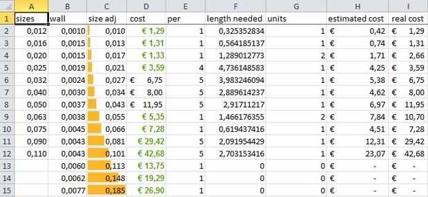 Las tuberías necesitan para ajustarse a campos específicos, por lo que tengo miedo que necesito experimentar para siempre para obtener los tamaños de todos los tubos de 50. Pero no, que alguna magia de Excel nos puede salvar de este problema.