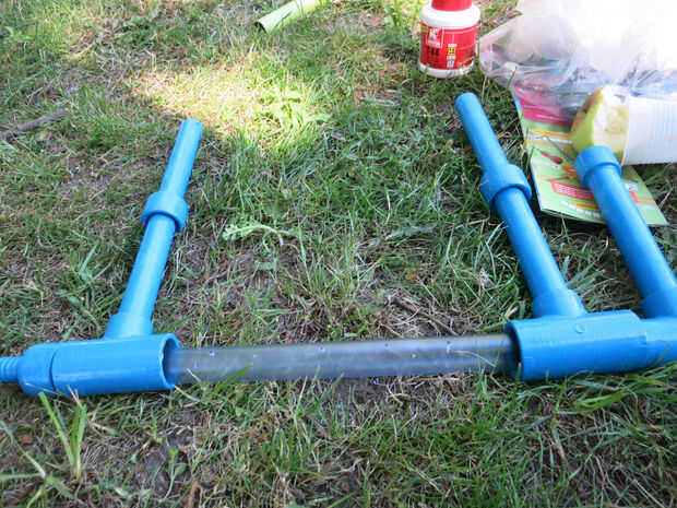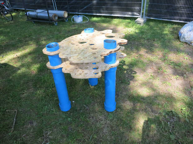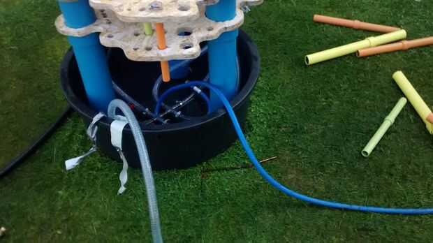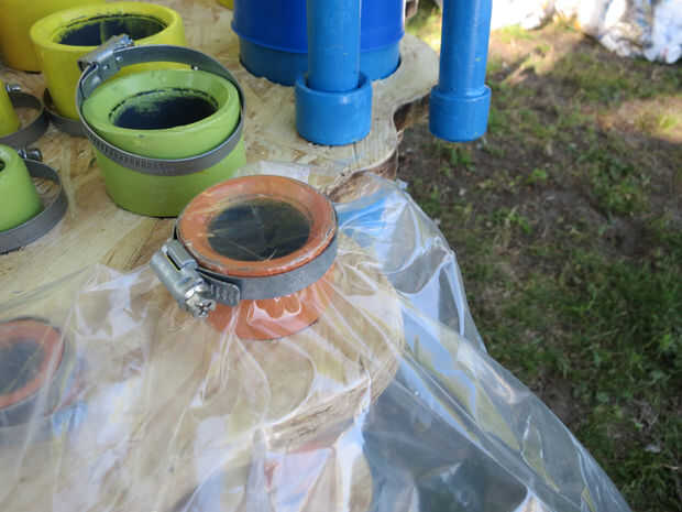 Primero usted puede configurar los tubos tres 'patas' y luego poner las tablas sobre ellos. Ahora, todos los tubos de sonda se pueden colocar en su agujero. Para las membranas, puede utilizar el tipo de bolsas plástico transparentes gruesos. Colocar en un tubo y cierre herméticamente con una abrazadera de tubo metálico y luego cortar el material sobrante.
