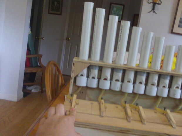hacer un kit de construcción de tamaño chico de tubo de PVC y accesorios de tubería. Todo (el adulto) debe hacer es cortar el tubo y luego dan la vuelta a los niños. (Los niños más pequeños se necesita ayuda.) Los niños serán capaces de construir el