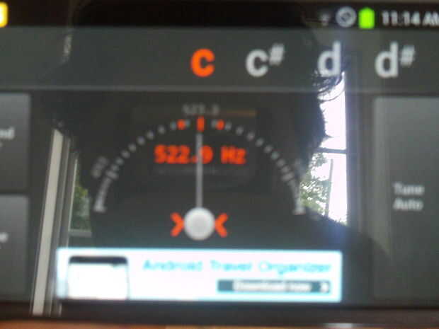 Usé una nota sintonía programa en mi teléfono llamada gStrings (mala elección de un nombre) para ajustar cada tubo a un campo cercano de perfecto, se trata de mucho más tiempo parte de la construcción. Se corta un tubo más la echada se hace y más consigue el más bajo el tono, si se corta los labios labia igual que puede cambiar octavas por reducir a la mitad o duplicar la longitud de la tubería (dobles de Pitch o mitades haciendo saltos de octava).