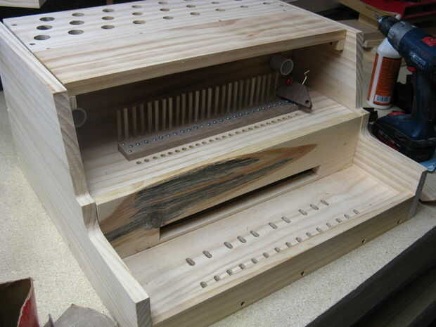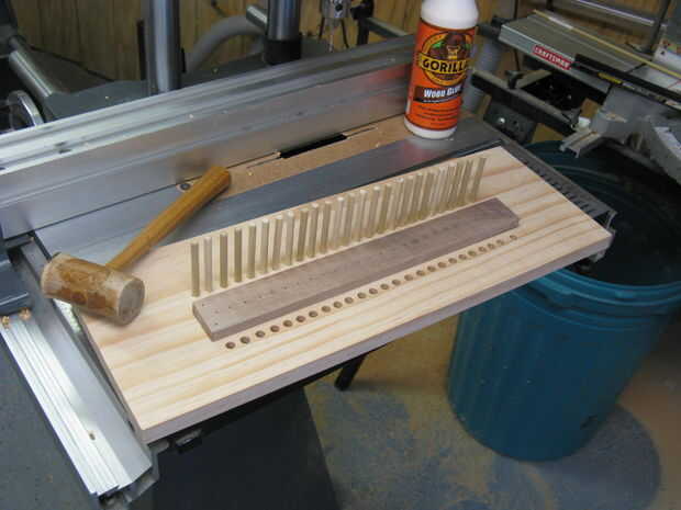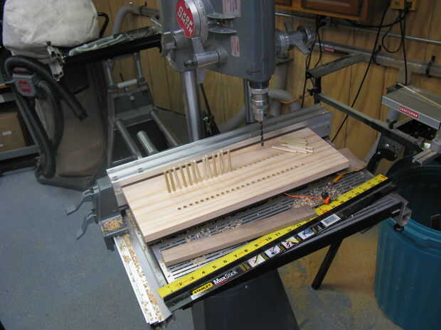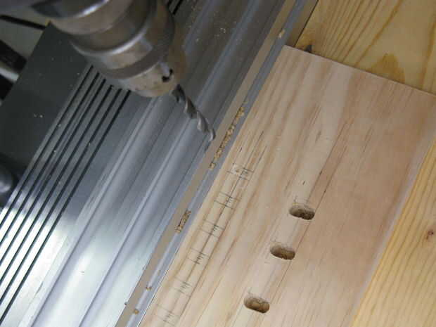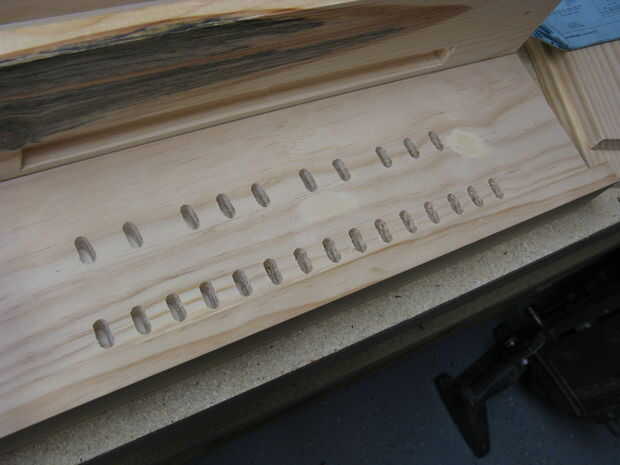 Cajeado todos los agujeros piloto con un 3/8" bit a recibir los tapones. (V).