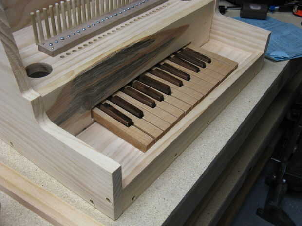 Luego diseño y diámetro la guía de orificios en la base de teclado (E) y el apoyo de eje de balancín (I).