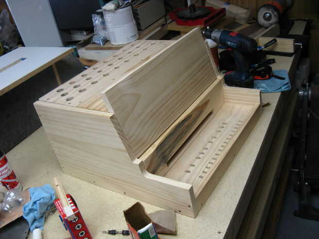 Diámetro orificios para los tornillos conectando las piezas gabinete con una broca Nº 6.