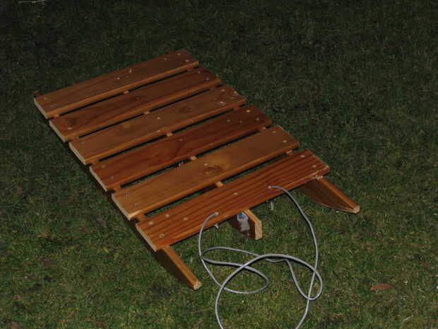 ACTUALIZACIÓN - este trineo funciona mejor en nieve duro-embalada. Para hacerla trabajar en nieve profunda, seguir la sugerencia de BugsyandSpike más abajo y poner una 2 "x 1" pieza de madera (con pernos en consecuencia más largos) entre la plataforma y el tubo para darle separación de tierra mejor. (Hay algunos otros mods que vale la pena en ese comentario demasiado.)
