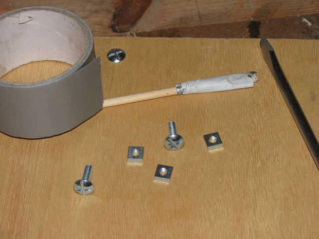 Coloque una tuerca en esto, alimentar el tubo y tornillo en el tornillo del otro lado - las tuercas cuadradas coger contra la curva del tubo y agarre, pero no apriete hasta que ya los tienes todos en. Además, ayuda a marcar la espiga a la profundidad de cada agujero de perno.