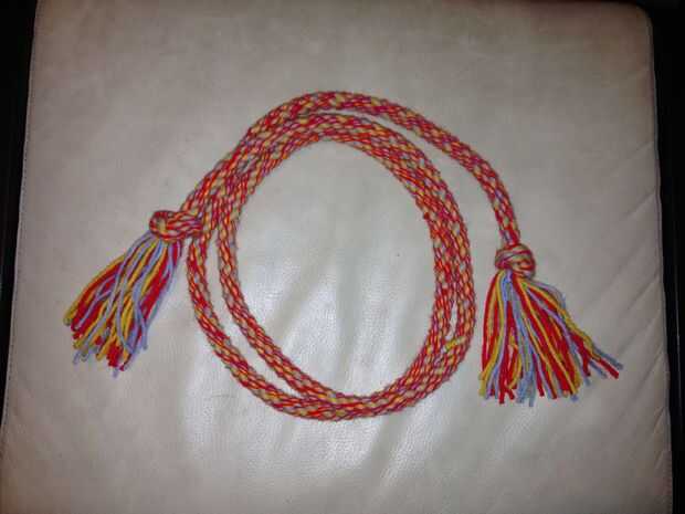 Para cuerdas de saltar usas estambre acrílico. Tres hebras de hilo envuelto cada enrollador hook tres veces.