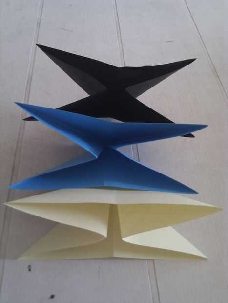 Con el cuadrado de papel que se debe ver que los dos pliegues diagonales que una forma de tipo reloj de arena, los dos triángulos de "reloj de arena" no va a cambiar la forma en todos, usted necesitará doblar los lados hacia el interior y el doblez a lo largo de los pliegues diagonales y deben contraer como las fotos.