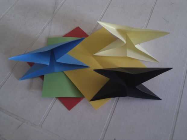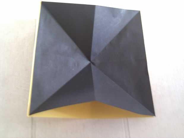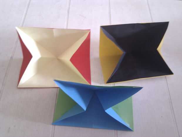 Ahora contamos con 3 bases waterbomb y 3 piezas de papel con pliegues en el centro.