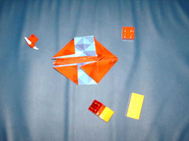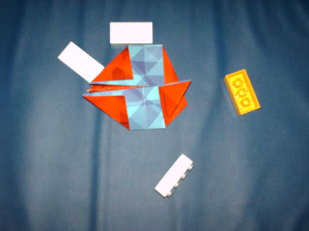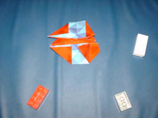 Ahora doblar la aleta que doblado encima en el segundo tanque en frente de la espiga que había delante el papel que hundido. Repetir este proceso en el otro lado.