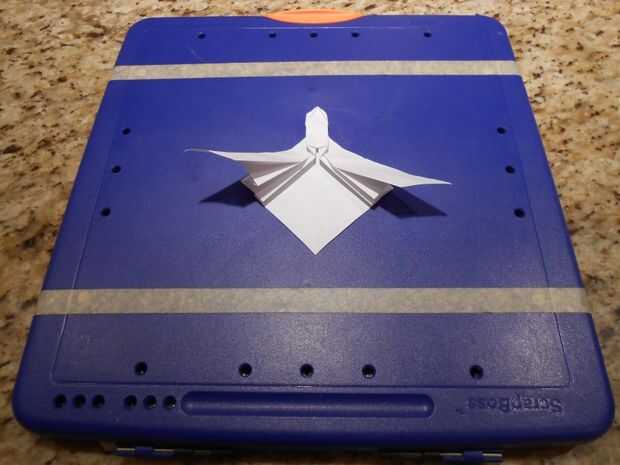 Levante el ala y el papel para desenvolver de alrededor de sí mismo la fuerza.
