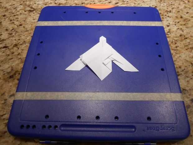 En el cuadro 1, pliegue la sección cuadrada horizontal, luego doblar las esquinas derecha e izquierdas así que las esquinas están a lo largo del pliegue y los pliegues verticales donde comienza el pliegue de zig-zag subyacente.