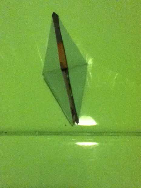 Aplastar los pliegues hacia abajo. El resultado debería verse como un rombo muy alargado.