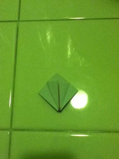 Doblar las aletas de un lado hacia el centro para hacer una cometa forma.