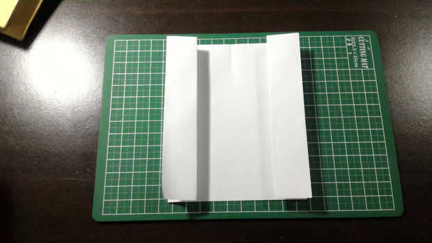 doblar la esquina del papel ahora situado en el centro hacia afuera alcanzando el borde doblado del paso 1