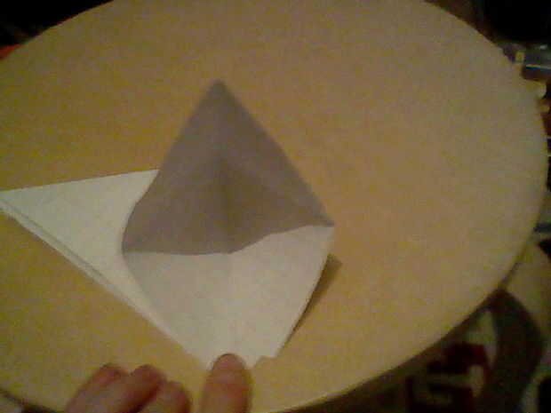 Doble papel You ' r en un triángulo otra vez. Levantar la esquina que está en la parte superior derecha , ábrala un poco luego spuish hacia abajo hasta hacer un cuadrado. Voltee el papel y repita.