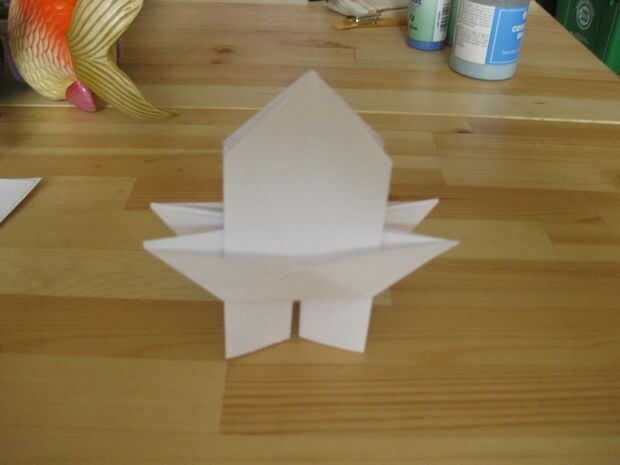 9. doblar las esquinas superiores para crear los estantes de la pagoda.