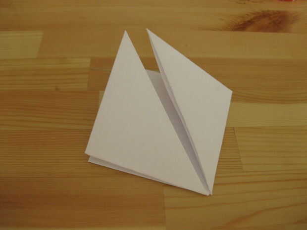 1. Comience con una pieza cuadrada de papel y doblar diagonalmente dos veces.