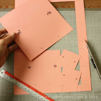 Descargar y la plantilla de impresión sobre papeles de colores. Ajustar a tamaño A4 impresión. Luego corte a lo largo de las líneas de puntos. Debe tener 1 grande, 1 mediana y 2 cortes cuadrados pequeños.