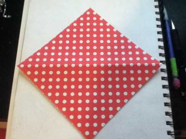 instruccionesPaso 1: Empezar con un papel de origami cuadrado de 6 pulgadas x 6 pulgadas (15 cm x 15 cm), color de lado hacia abajo.dobla el papel por la mitad en tanto eje diagonal. pliegues bien y despliegue.Paso 2: Doble las 4 esquinas hacia el ce