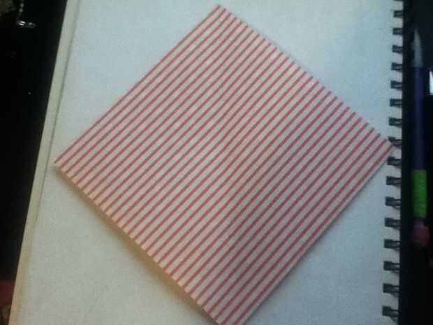 Empezar con su color y diseño principal hacia abajo. Teniendo su papel como un diamante doblar por la mitad ambas maneras. Pliegues bien y despliegue. Voltea el papel.