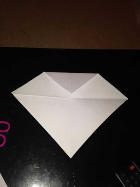 Gire su papel de manera que parece un diamante para obtener la parte superior del punto y doble hacia el medio en el pliegue del medio.