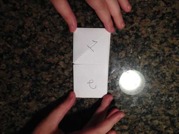 Dobla el papel por la mitad, luego desplegarlo y luego doblar el otro camino como otro signo. Esto proporciona la flexibilidad de adivino cuando usted pone sus dedos en él.