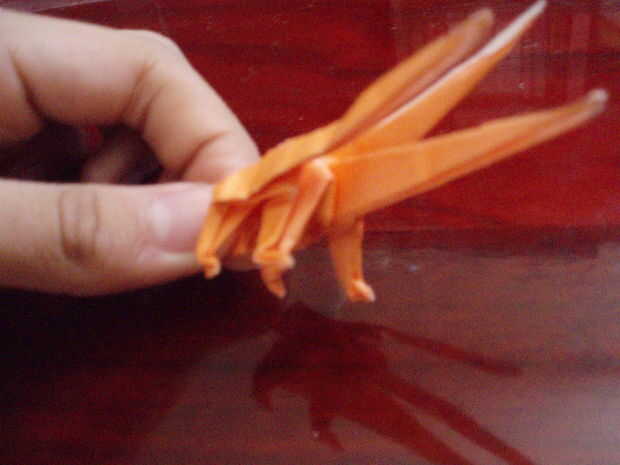 Ahora que haya terminado con la Base principal (realmente esta base es similar a la Alien de Fernando Gilgado! Pero todavía hay un montón de diferencia de todos modos...). Mire las piernas (que significa el más corto), habrá tres capas. Es que doble en que la capa, no importa! Doble hacia abajo. Luego doblar la mitad de él a la izquierda hacer lo mismo en la parte posterior. Luego meta la punta de la pierna para hacer la pata. Cuando haces las patas traseras, doble hacia abajo la capa opuesta de las patas delanteras. Ejemplo: Doble hacia abajo la primera capa de la pata delantera, por lo que se debe doblar hacia abajo la segunda capa para las patas traseras. (Si no entiendes, no importa, voy a hacer una ilustración de él más adelante).