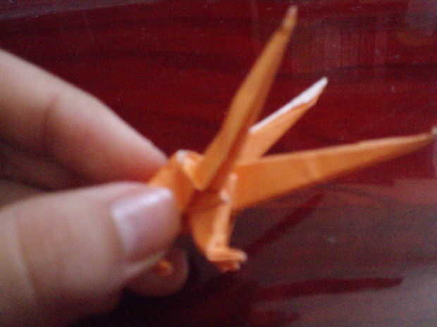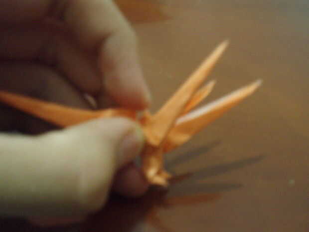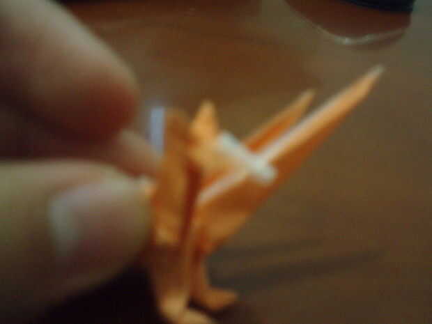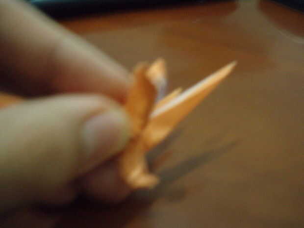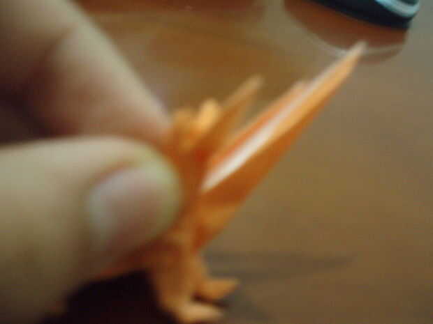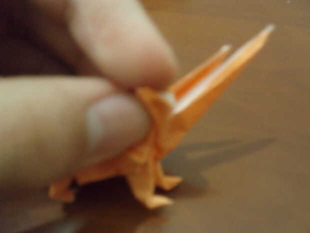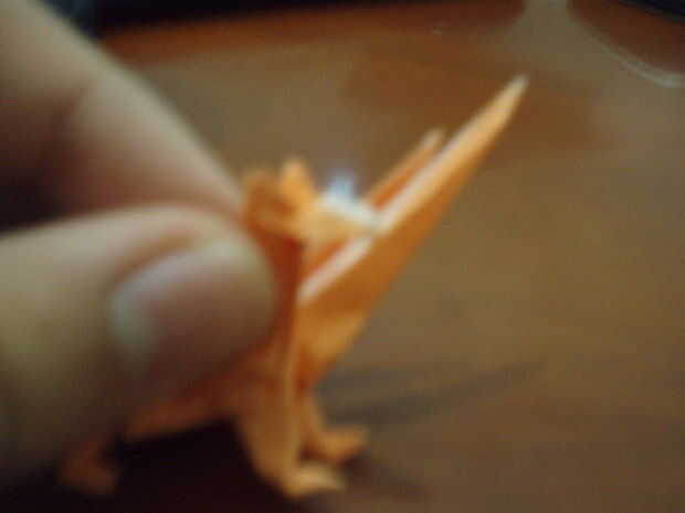 Lea cuidadosamente esta causa de paso esta es la parte más difícil. Doble doblar las cabezas. La 'chepa' se hunden en la parte posterior. Abrir suavemente las cabezas, por lo que se transmite. Doblar la punta de la cabeza (alrededor de 1/3 o 3/5 de él). Agarre el cuello con los dedos (mirar la imagen). Coloque la cabeza hacia abajo en forma de triángulo. Doble la cabeza hacia arriba, luego conejo-oído abatirla. Invertir dentro de doblez de la mitad de la cabeza. ¿(No desea que su Cerberus'es cabeza parece un zorro, derecho)?