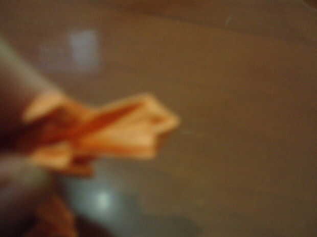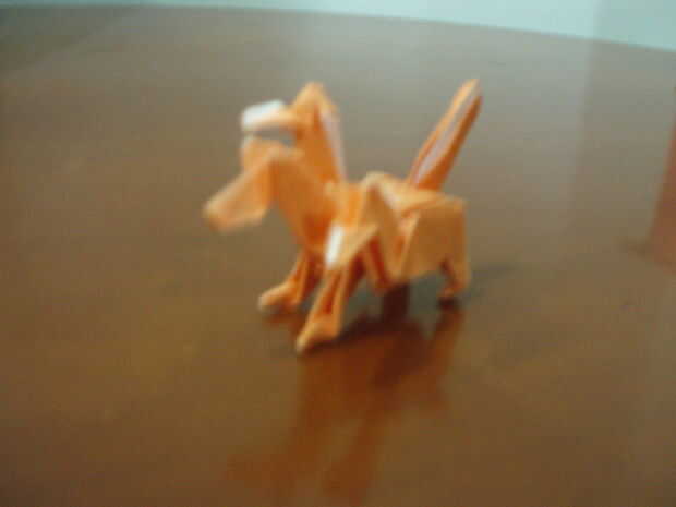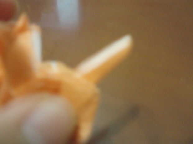 Invertir dentro de doblez cerca de la mitad de la cola. Doble hacia abajo tanto la punta de la cola, por lo que ve fuerte. Entonces 'fina' la cola por atrás dentro de la mitad de la cola (horizontalmente). Y listo con el Cerberus! Balance de los pies de modo que puedan resistir firmemente. (Lo siento, por las imágenes de blur.).