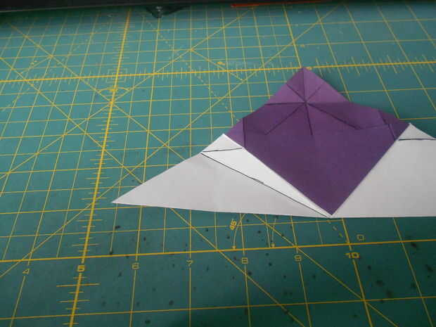 Hacer un doblez del lado izquierdo del triángulo pequeño a la mitad inferior del papel.