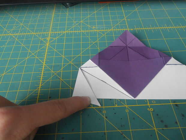 Doblar para que el lado izquierdo del triángulo se alinea con el pliegue de la última etapa.