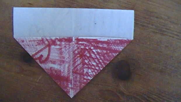 El cuarto superior a la parte posterior del doblez. Debe aterrizar en el pliegue horizontal. Doblar la parte inferior izquierda y la derecha ángulos de pliegue vertical.