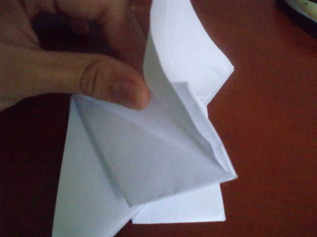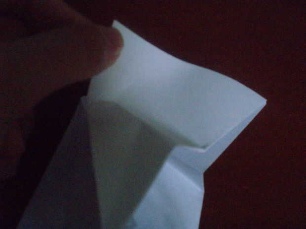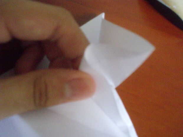Pull a layer down. Bueno, esta es la parte más difícil, espero que tengas mucha paciencia. Tire de él suavemente. Cuando es tirado por el medio, doble la esquina. El doblez hacia abajo. (Ésta es realmente confuso, honestamente).
