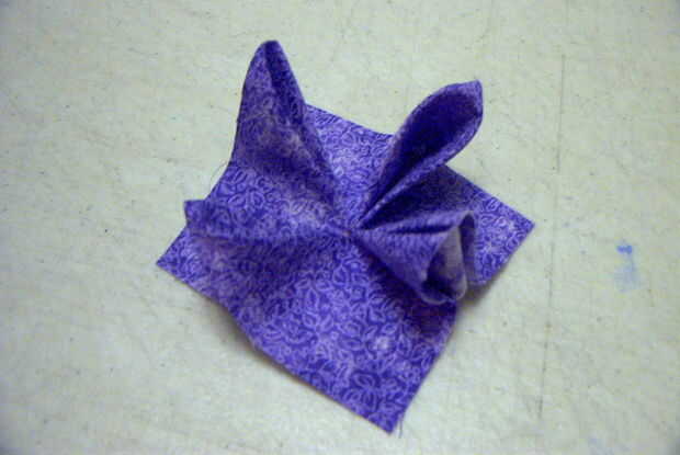 Ir alrededor de todo el asunto, creando cuatro orejas y con tachuelas cada medida que avanza. Algo así como un rangood de cangrejo o una cosa de la galleta de la fortuna. ¿Ver?
