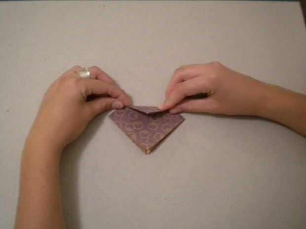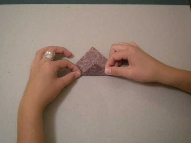 Es necesario este paso más o menos para la dirección de un pliegue en el paso siguiente a venir. Tenga en cuenta que este pliegue puede tener que ajustar más adelante. 1) han doblado esquina apuntando hacia arriba. 2) hacer un pequeño pliegue en la esquina superior doblada la cuarta bajando la Plaza. Nota: no haga un pliegue agudo.