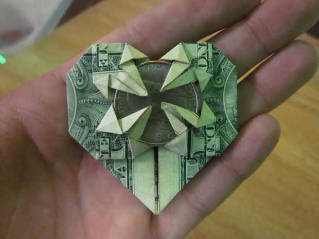 Finalmente lo hizo! Origami es tedioso y a veces frustrante, pero siempre vale la pena. No tengo el origami corazón dólares en mi primer intento, pero una vez consigo nunca olvidé como hacerlo. Te lo prometo, una vez que llegue no podrás olvidarla! Y entonces puede transmitírselo a otras personas. Felicidades, espero que hayas disfrutado!