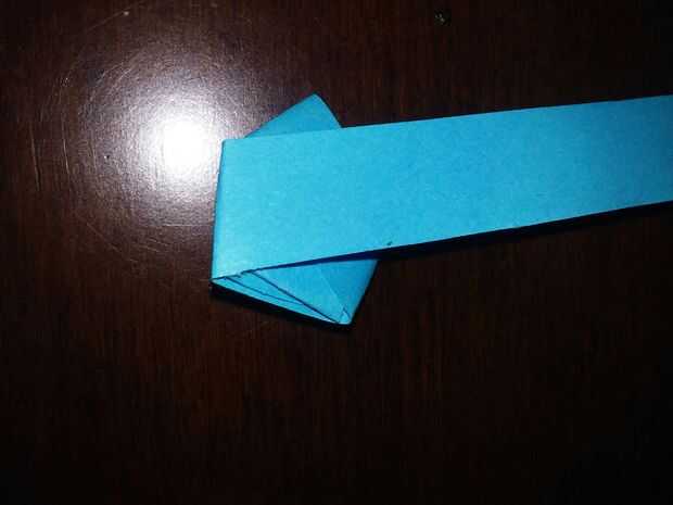 Ahora toma el lado largo de exceso de papel y comenzar a ti doblar. doblar una vez alrededor de la estrella. No olvide girar en direcciones torpes ya puede provocar lágrimas y arrugas no deseadas. También asegúrese de cuando termines dobla alrededor de una vez el resto del exceso de papel se alinee con un bolsillo en la estrella.