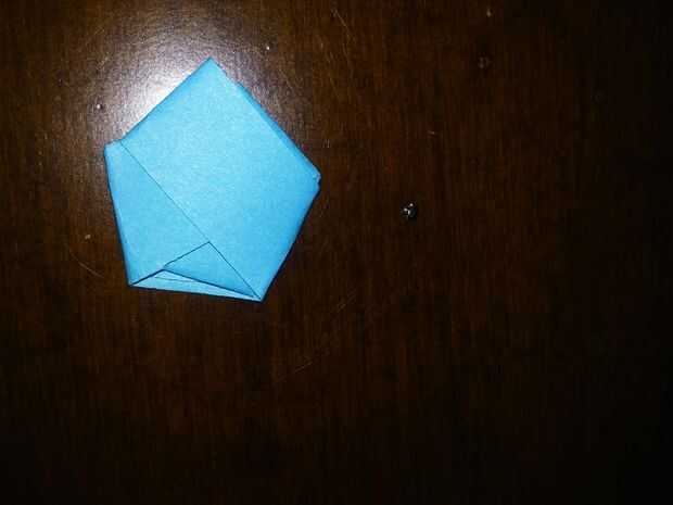 Paso 1:Necesita 1 pedazo de papel cuadrado de un color, 4 pedazos de un papel cuadrado de colores diferentes y 4 pedazos de papel de otro colorPaso 2: Un color de papel del doblez sobre aquíPaso 3: Dale la vueltaPaso 4: Hacer el pliegue a lo largo de