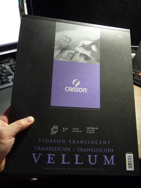 5. tira 1,5 cm x 18 cm de vitela translúcido: en la mayoría de tiendas de arte... tengo la mía desde Utrecht