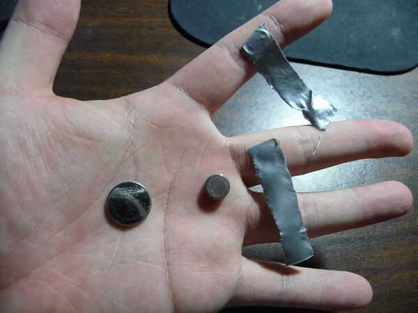 Estoy usando cinta adhesiva cuz aquí no tengo ningún fleje cinta... jeje... se puede encontrar prácticamente en cualquier lugar