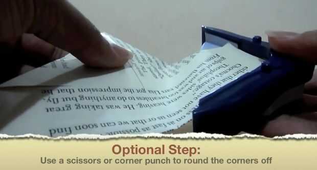 Utilizar un par de tijeras o el punzón de la esquina para redondear las esquinas.