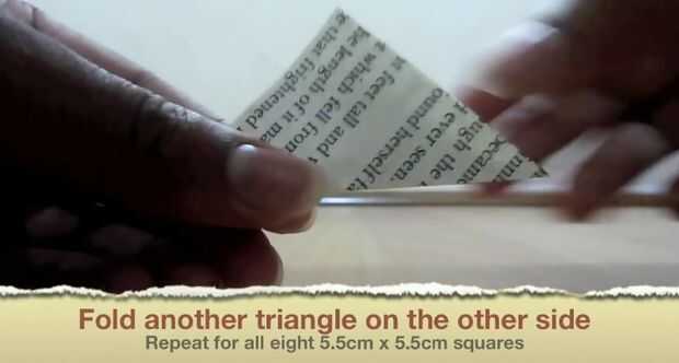 Doblar otro triángulo del otro lado y repita para todos los cuadrados ocho de 5,5 x 5,5 cm.