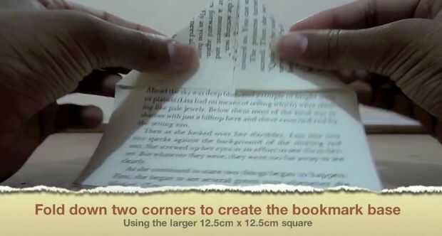 Doble hacia abajo las dos esquinas para crear la base, con la plaza mayor de 12,5 cm x 12,5 cm.