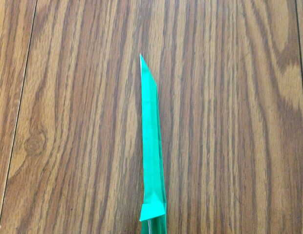 El vástago es todavía un poco demasiado gorda, pues realizar una largo oreja de conejo hacia abajo de la longitud de la parte superior y bajar la mitad del tallo. Los pliegues diagonales de la oreja de conejo será muy corto esta vez. Este paso da lugar a un tallo que es casi tan grueso en una dirección como en el otro - también da un agradable aspecto natural debido a las múltiples capas.